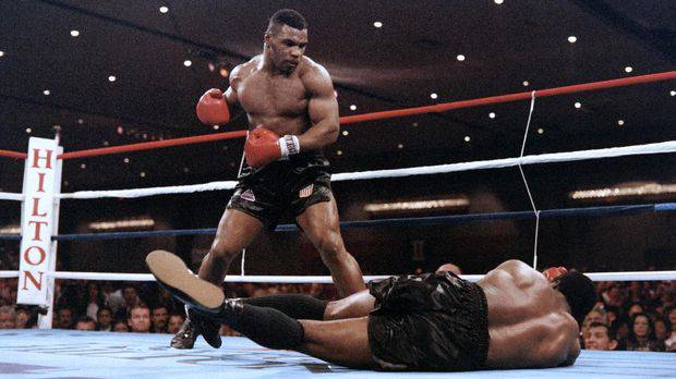 Mike Tyson saat mengalahkan Trevor Berbick. (AFP PHOTO / Carlos SCHIEBECK) Tyson pernah tercatat sebagai petinju termuda yang meraih sukses di panggung dunia pada 1986 ketika mengalahkan Trevor Berbick dalam perebutan sabuk juara WBC. Usianya saat itu baru 20.
